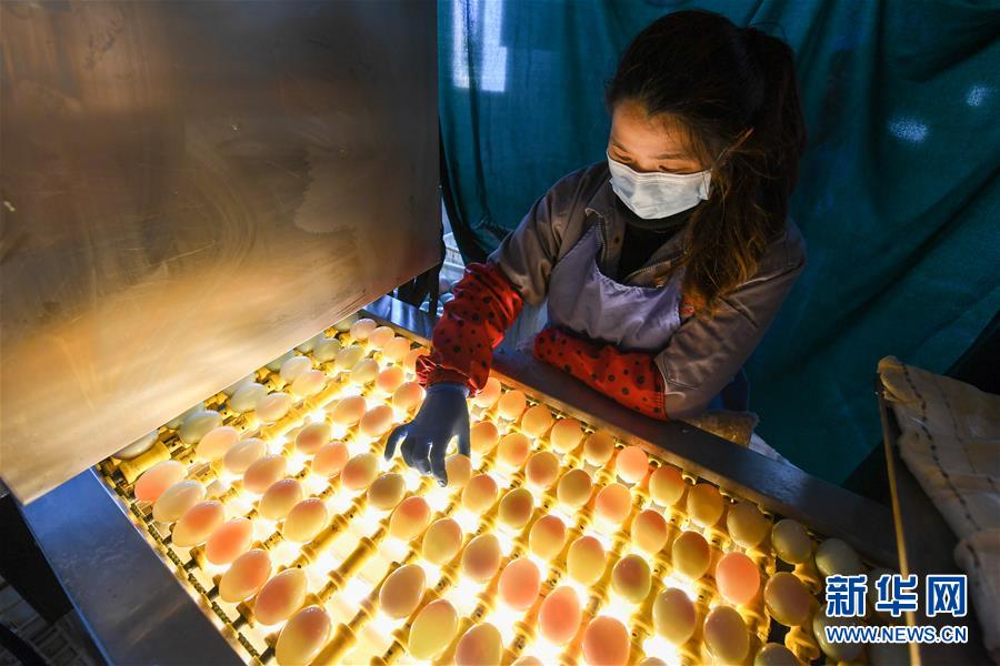 江蘇高郵鴨集團的工作人員在生產(chǎn)線上對鴨蛋進行光檢作業(yè)(4月15日攝)。“高郵鴨蛋”是江蘇高郵的特色農(nóng)業(yè)名片。近年來,當?shù)卦诹挤N繁育、生態(tài)養(yǎng)殖、產(chǎn)品加工等方面加大力度,推動高郵鴨蛋品牌化建設(shè),讓小鴨蛋成為帶動農(nóng)戶致富的大產(chǎn)業(yè)。2019年,高郵市共計生產(chǎn)熟制鴨蛋產(chǎn)品近11.2億枚,年產(chǎn)值近17.68億元。新華社記者李博攝