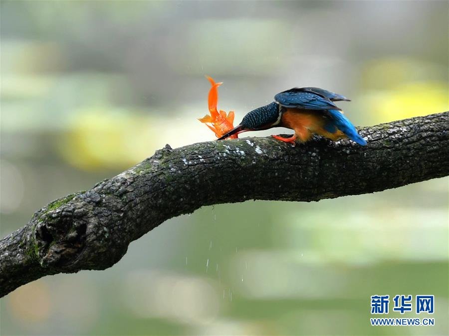 4月19日,在福州西湖公園,一只翠鳥捕到一條小魚。當(dāng)日是春季的最后一個(gè)節(jié)氣“谷雨”。此時(shí)節(jié),春天即將走到尾聲,萬(wàn)物將展現(xiàn)出蓬勃生長(zhǎng)的姿態(tài)。新華社記者魏培全攝