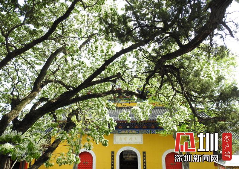 2020年4月22日,連云港市孔望山景區(qū)龍洞庵,800余歲流蘇古樹繁花似錦。