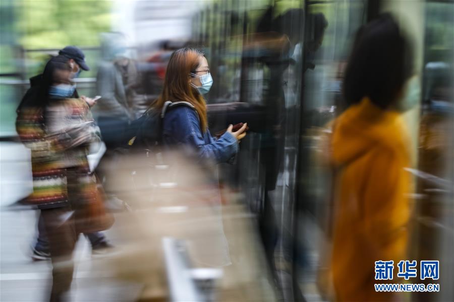 4月22日,在武漢軌道交通一號線,乘客排隊有序上車。為建立與經(jīng)濟(jì)社會發(fā)展和疫情防控需要相適應(yīng)的運輸服務(wù)保障機(jī)制,保障市民出行需求,從4月22日起,武漢城市公共交通有序恢復(fù)全線網(wǎng)運營。新華社記者沈伯韓攝