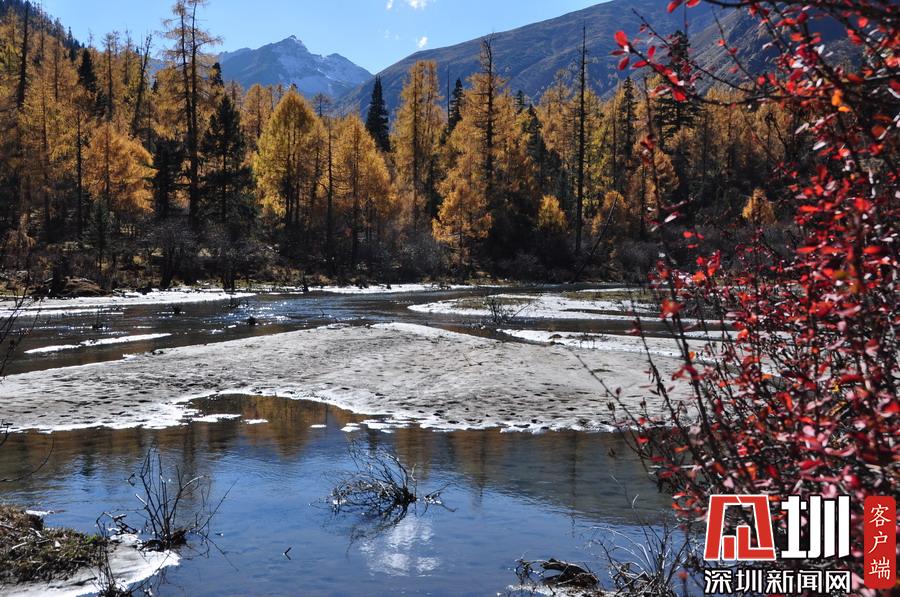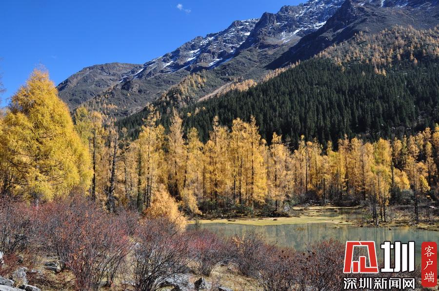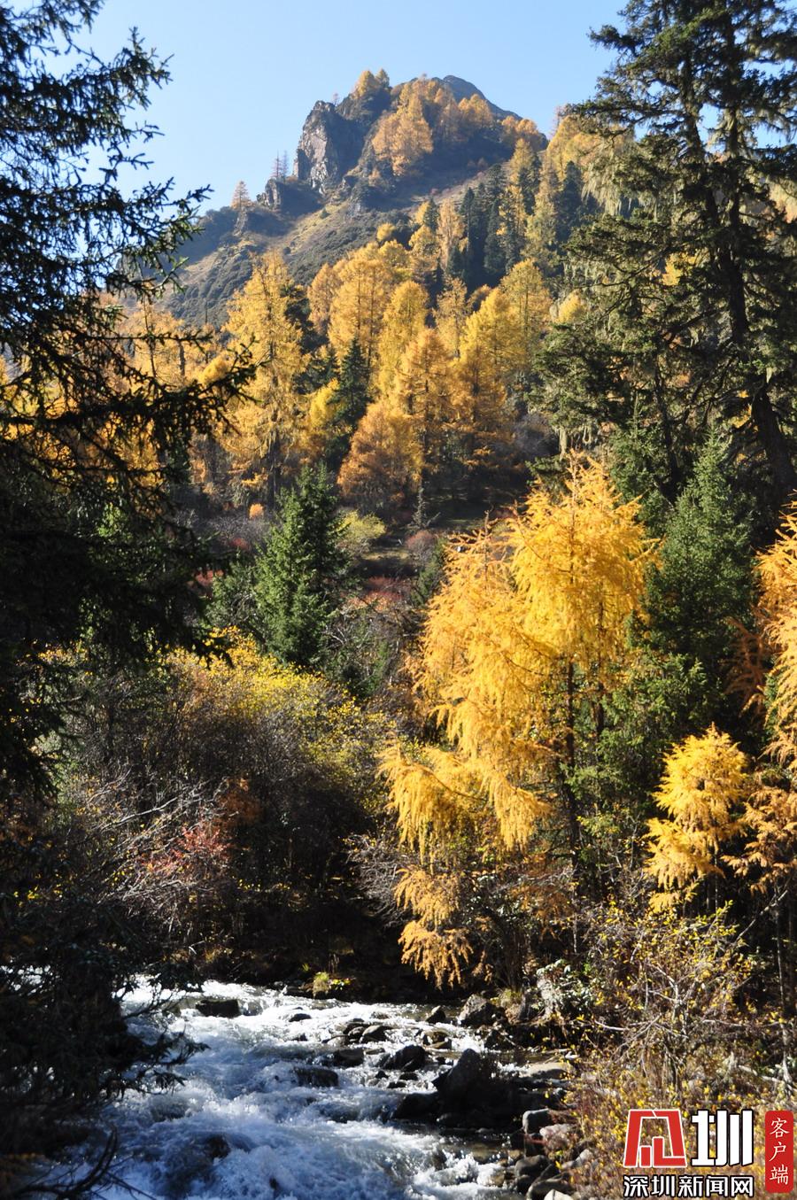 溝里有大片的落葉松、杜鵑和云杉林,雪山、海子、濕地、河流等景觀應有盡有,唯獨沒有公路,只能沿木棧道徒步游覽。李仁奇攝