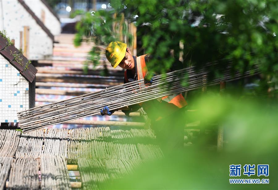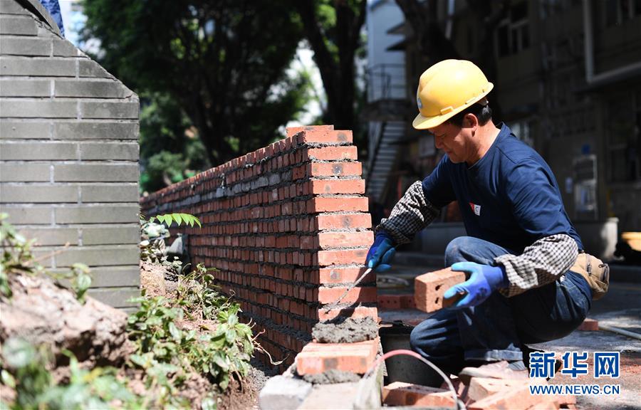 4月26日,工人在渝中區(qū)大溪溝街道雙鋼路社區(qū)改造提升項目施工現(xiàn)場作業(yè)。近段時間以來,重慶市渝中區(qū)大溪溝街道加快推進轄區(qū)內(nèi)老舊小區(qū)改造提升工作,從環(huán)境衛(wèi)生、房屋管理及養(yǎng)護、安防及車輛管理、綠化管理等方面進行綜合改造提升,以增強社區(qū)居民的幸福感、獲得感、安全感。新華社記者王全超攝