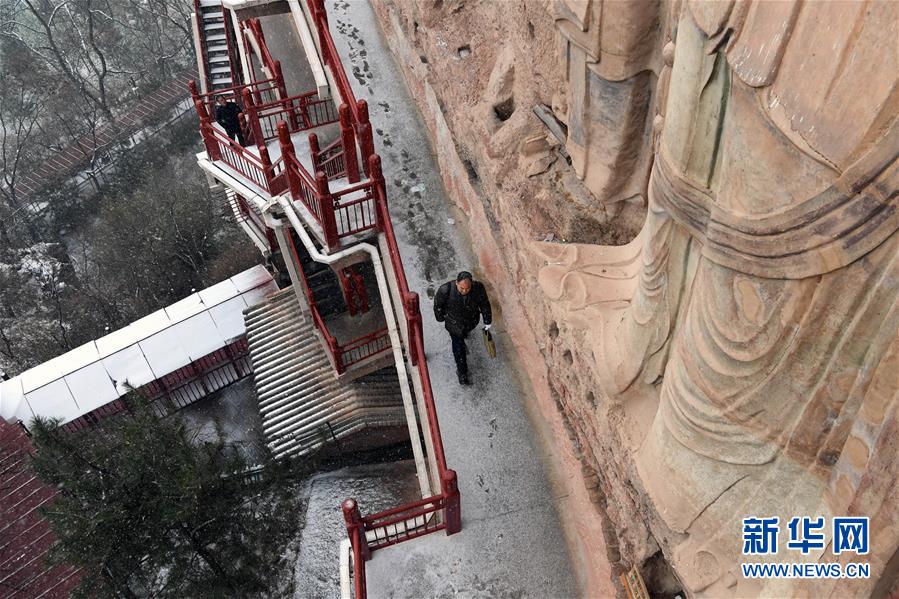12月26日,游客在麥積山石窟參觀游覽。新華社記者馬寧攝