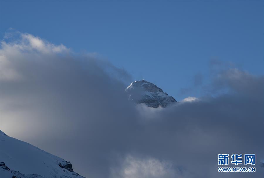 日出時(shí),珠峰籠罩在云霧里(4月28日攝)。新華社記者晉美多吉攝