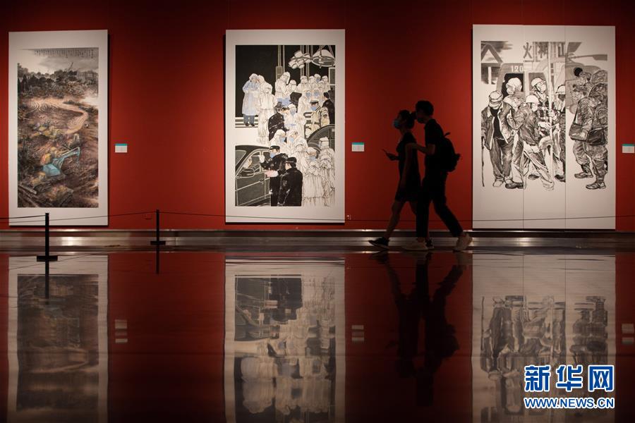 5月2日,觀眾在位于南京的江蘇省美術(shù)館觀看江蘇省抗疫主題美術(shù)書(shū)法精品展。“五一”假日期間,人們以多種方式放松心情、享受假日。新華社發(fā)(蘇陽(yáng)攝)