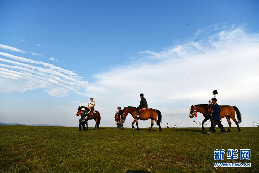 5月3日,游客在貴州省龍里大草原景區(qū)騎馬觀光?!拔逡弧毙¢L假期間,貴州省黔南布依族苗族自治州龍里大草原景區(qū)天氣怡人,高山草原風光吸引游客前來游玩。新華社記者 楊文斌 攝