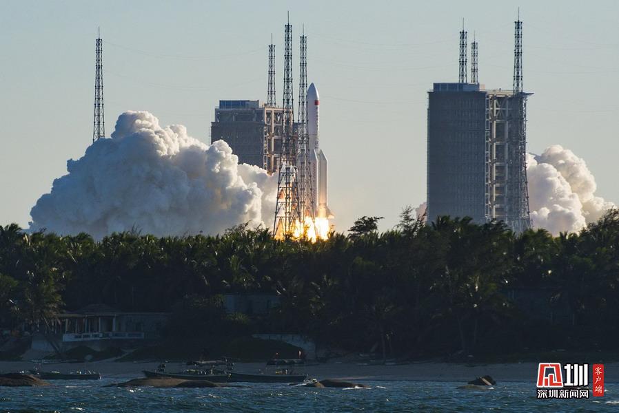 2020年5月5日18時(shí),為中國(guó)載人空間站工程研制的長(zhǎng)征五號(hào)B運(yùn)載火箭,搭載新一代載人飛船試驗(yàn)船和柔性充氣式貨物返回艙試驗(yàn)艙,在中國(guó)文昌航天發(fā)射場(chǎng)點(diǎn)火升空。約488秒后,載荷組合體與火箭成功分離,進(jìn)入預(yù)定軌道,首飛任務(wù)取得圓滿成功。駱云飛(海南分社)/中新社/人民視覺(jué)