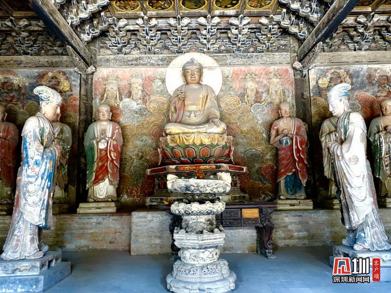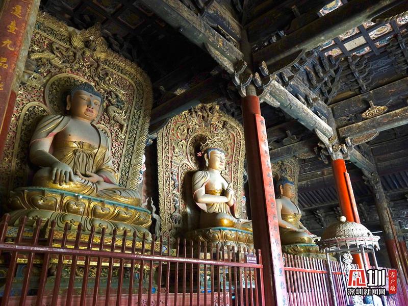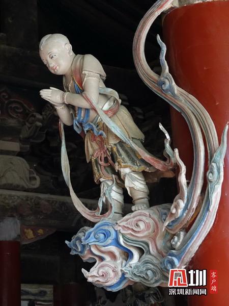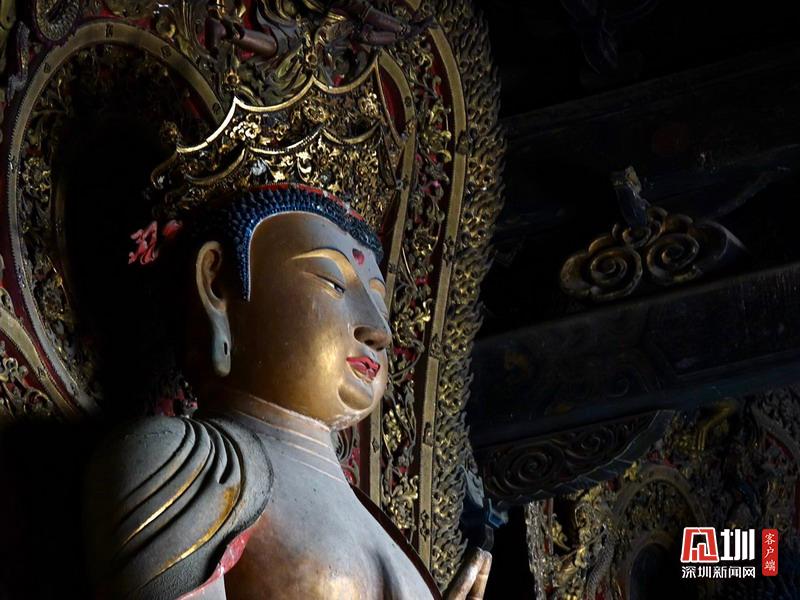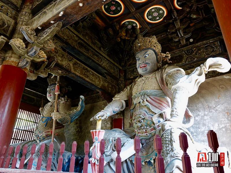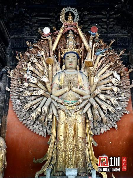 報恩寺布局結構酷似北京紫禁城,被稱為“深山故宮”。寺內古木參天,氣象森嚴,飛檐凌空,金碧輝煌。大悲殿中的用整根楠木雕成的千手千眼觀音像、華嚴藏中的轉輪經藏和泥塑蟠龍,以及遍布全寺的彩繪壁畫,都是世間罕見的藝術珍品。李仁奇攝