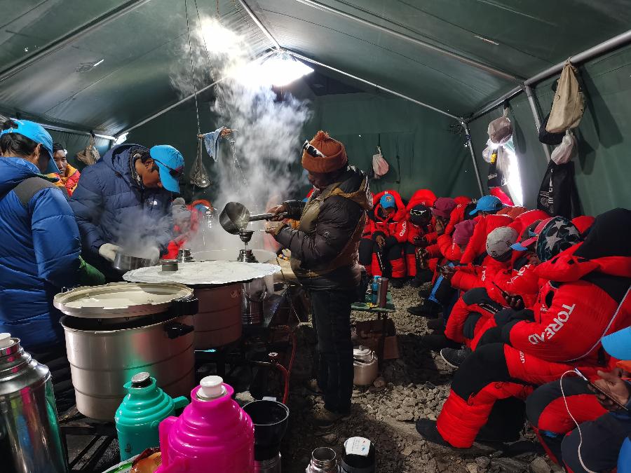登山隊(duì)連同修路隊(duì)海拔6500米上召開協(xié)調(diào)會議