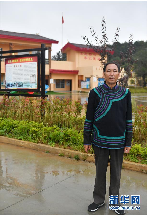 彝海結(jié)盟紀念館管理員沙馬依姑在彝海村前留影(2019年9月7日攝)。新華社記者孫瑞博攝