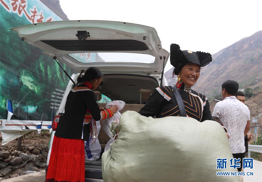 5月12日,四川省昭覺縣阿土列爾村第一批26戶貧困戶陸續(xù)下山準(zhǔn)備搬新家。新華社記者江宏景攝