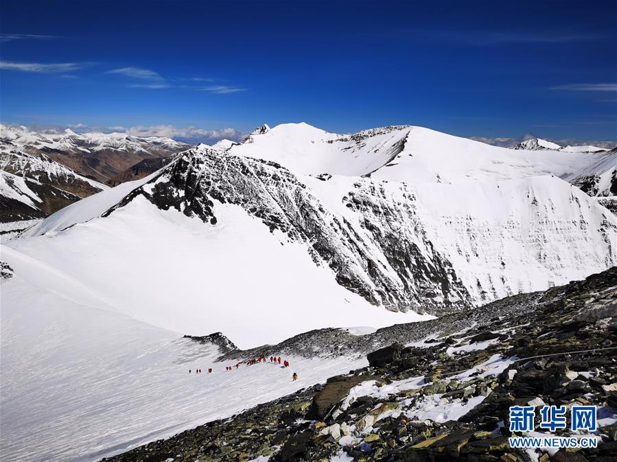從珠峰海拔7028米以上拍攝的壯美景色(5月12日攝)。從珠峰海拔7028米的一號營地繼續(xù)向上攀登,沿途景色十分壯美。新華社特約記者拉巴攝