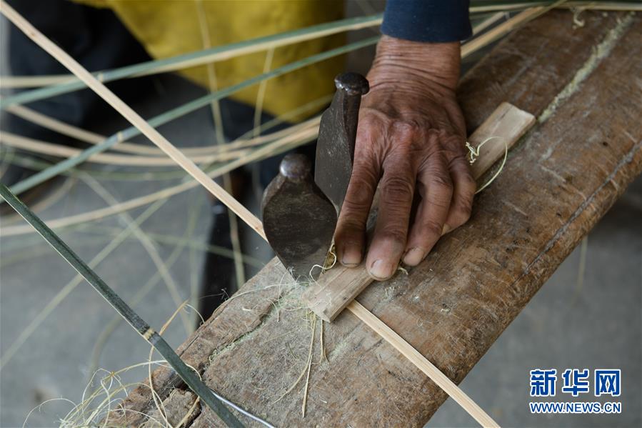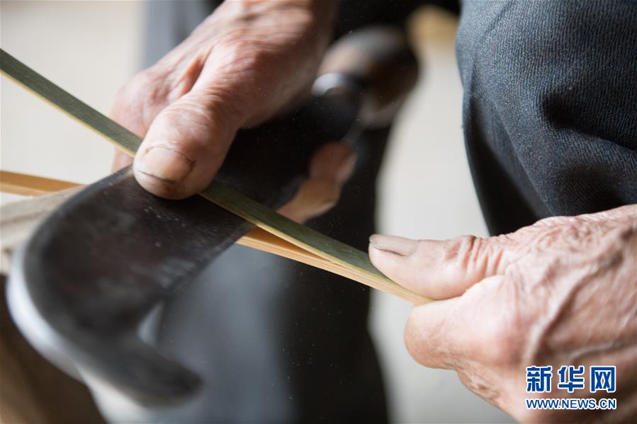 5月12日,浙江諸暨龍溪村的百歲老人蔡渭東在家中處理竹篾。浙江諸暨東和鄉(xiāng)龍溪村有一位102歲的老人蔡渭東,他從12歲開始拜師學藝,做了90年的篾匠,如今依然耳聰目明,每天堅持編織篾器。蔡渭東老人說他舍不得丟掉這份老手藝,也希望年輕人能傳承下去。新華社記者翁忻旸攝