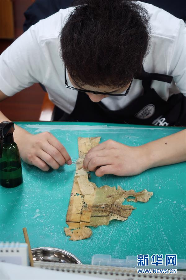 5月13日,古籍修復(fù)師在對書頁進(jìn)行修復(fù)。天一閣藏品修復(fù)部目前有修復(fù)師14人,每年約修復(fù)古籍14000余頁。據(jù)介紹,修復(fù)一冊古籍通常需要1至2個(gè)月,有的甚至需要1年以上。新華社記者鄭夢雨攝