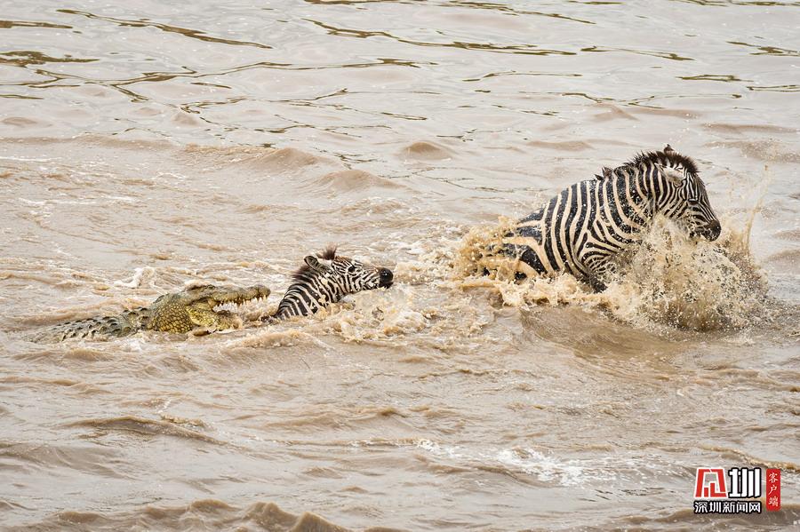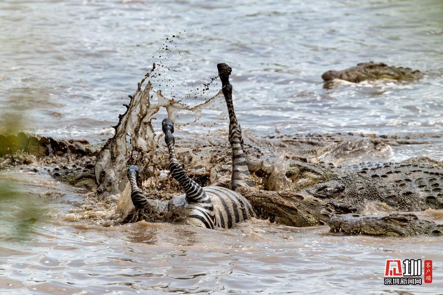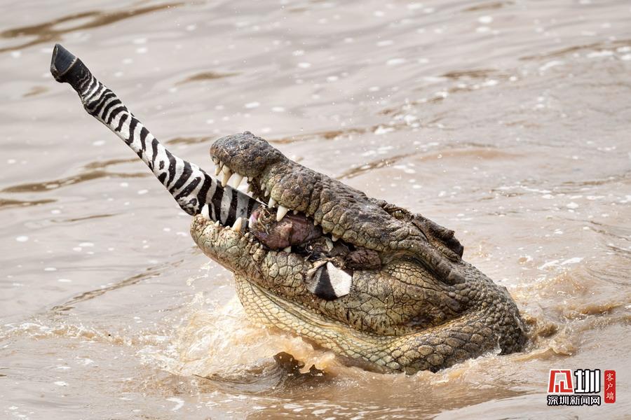2020年5月20日?qǐng)?bào)道(具體拍攝時(shí)間不詳),印度攝影師Nimit Virdi在肯尼亞賽馬拉國(guó)家保護(hù)區(qū)中親眼目睹到鱷魚獵食的震撼畫面。