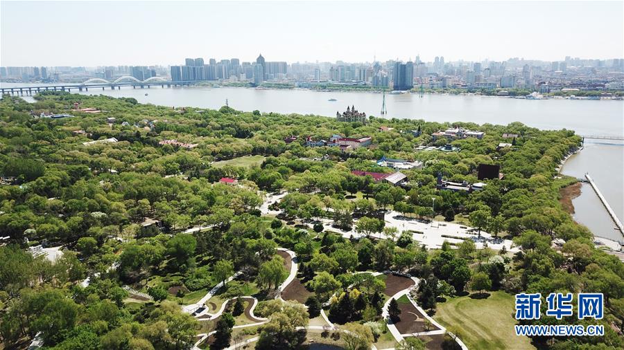 這是5月14日拍攝的哈爾濱大劇院附近的一處濕地(無人機(jī)照片)。時(shí)下,“國際濕地城市”黑龍江省哈爾濱市各處濕地綠意漸濃,展現(xiàn)出“萬頃松江濕地,百里生態(tài)長廊”的壯闊畫卷。新華社記者王建威攝