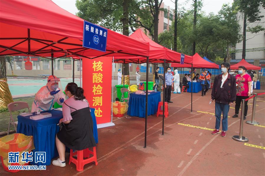5月15日,在武漢東西湖區(qū)吳家山第一小學操場檢測點,工作人員對市民進行核酸檢測。近日,武漢將對全市市民有序開展核酸檢測,進一步摸清無癥狀感染者底數,進而有效管控。新華社記者肖藝九攝