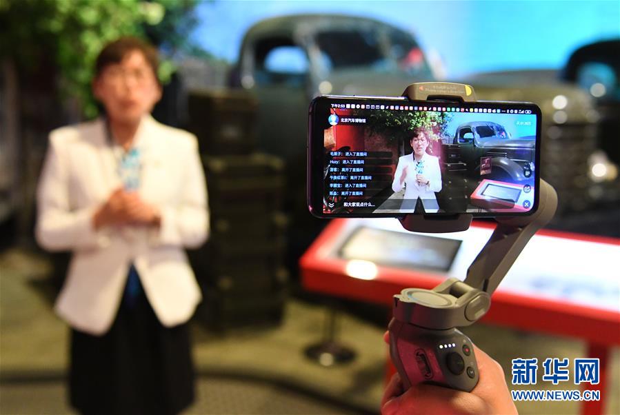 5月18日,在北京汽車博物館,工作人員(左)用講故事的方式通過(guò)網(wǎng)絡(luò)直播平臺(tái)介紹展品。當(dāng)日是國(guó)際博物館日,北京汽車博物館舉辦“帶你穿梭汽車時(shí)光”網(wǎng)絡(luò)直播活動(dòng),通過(guò)網(wǎng)絡(luò)直播平臺(tái)對(duì)博物館中的藏品車進(jìn)行展示和講解,讓網(wǎng)友足不出戶“云”游北京汽車博物館,了解汽車百年發(fā)展史,感受汽車文化魅力。新華社記者任超攝
