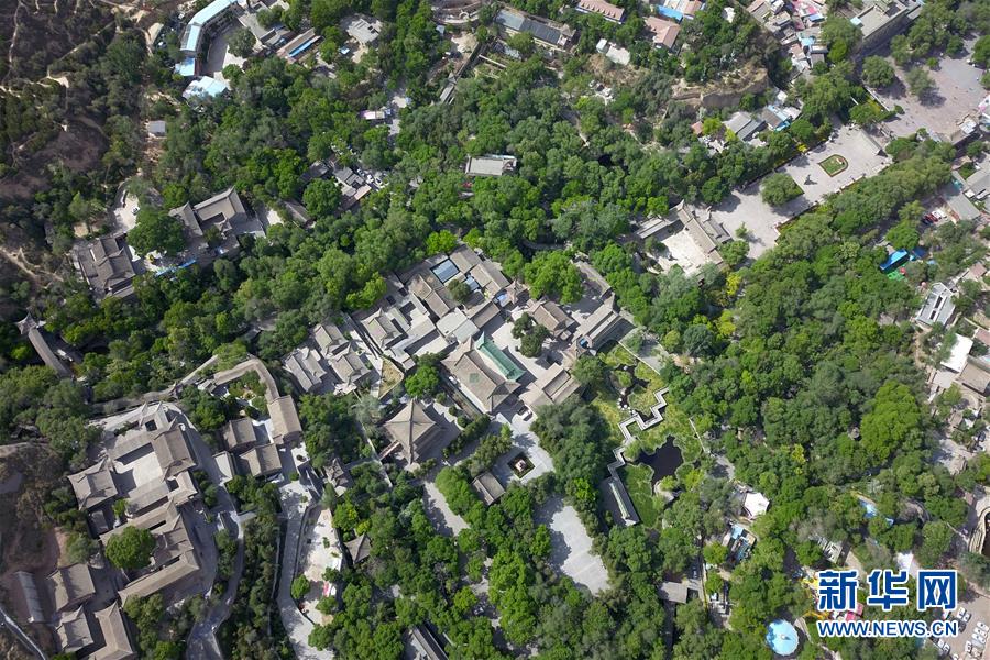 這是5月18日在蘭州市城關(guān)區(qū)拍攝的皋蘭山下五泉山公園初夏景象(無人機照片)。