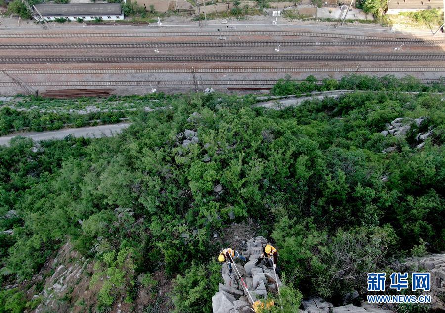 5月21日,捅山工胡軍從山頂垂降,準備開始捅山作業(yè)。新華社記者郝源攝