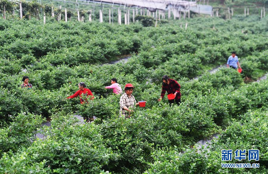 5月21日,村民在茨竹鎮(zhèn)大面坡村藍(lán)桂香園藍(lán)莓基地采摘藍(lán)莓。近日,位于重慶市渝北區(qū)茨竹鎮(zhèn)大面坡村的600余畝藍(lán)莓陸續(xù)進(jìn)入采摘期。近年來(lái),茨竹鎮(zhèn)探索“公司+基地+農(nóng)戶”的模式,利用良好的自然條件,積極發(fā)展高山藍(lán)莓產(chǎn)業(yè),在取得良好經(jīng)濟(jì)效益的同時(shí),有效帶動(dòng)當(dāng)?shù)卮迕窬蜆I(yè)增收。新華社記者王全超攝