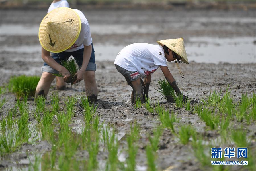 5月24日,一名小朋友在稻田里插秧。當(dāng)日,十余名小朋友在家長(zhǎng)的帶領(lǐng)下來(lái)到浙江省湖州市吳興區(qū)八里店鎮(zhèn)尹家圩糧油植保農(nóng)機(jī)專業(yè)合作社的稻田中,參加親子插秧、稻田捉魚(yú)等農(nóng)事體驗(yàn)活動(dòng)。新華社記者黃宗治攝