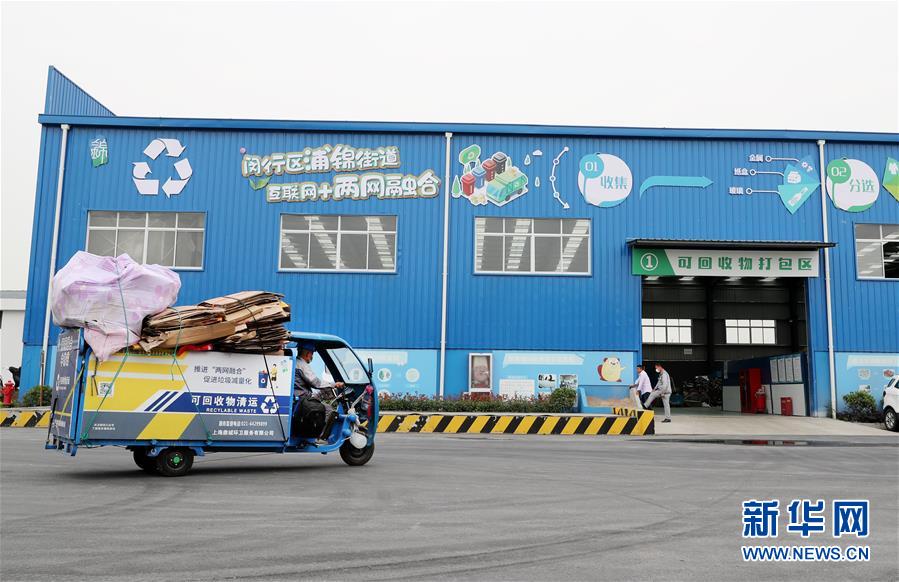 5月27日,一輛可回收物清運車駛?cè)肫皱\街道兩網(wǎng)融合中轉(zhuǎn)服務站。