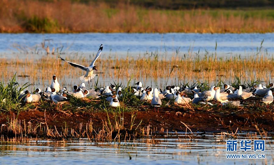 5月28日在陜西省神木市紅堿淖拍攝的遺鷗。陜西省神木市紅堿淖是中國最大的沙漠淡水湖,近年來隨著周邊生態(tài)環(huán)境改善,紅堿淖水位逐年提升,水域面積不斷擴大,每年四至八月,都會吸引大批遺鷗來此繁衍棲息,已成為遺鷗繁殖的重要基地。新華社記者劉瀟攝