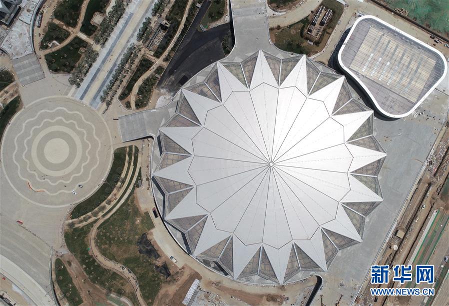 5月29日,工人在西安奧體中心游泳館施工。新華社記者張博文攝