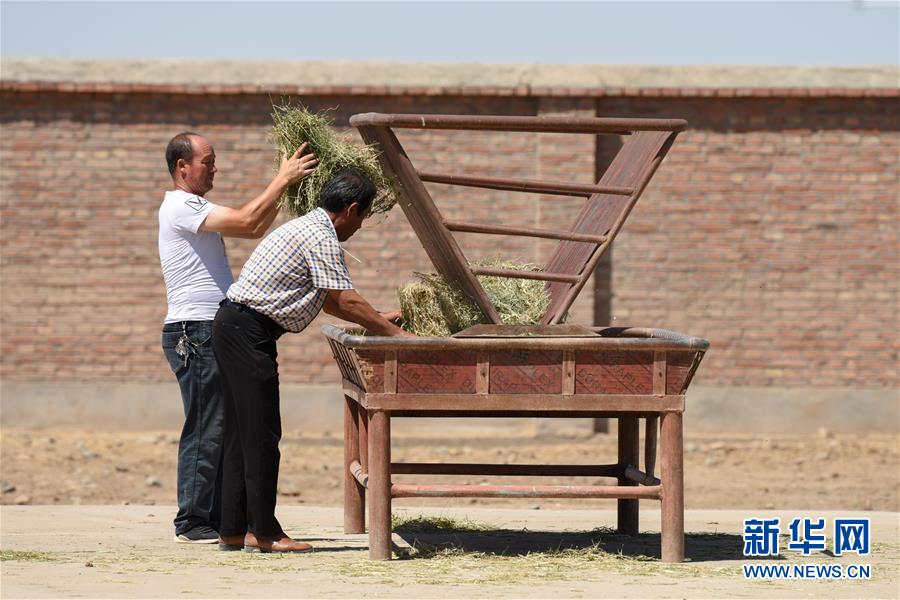 6月2日,在新疆野馬繁殖研究中心,工作人員在運送草料。新華社記者丁磊攝。