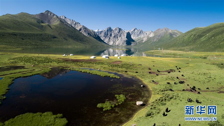 2019年7月8日拍攝的位于三江源地區(qū)的青海省果洛藏族自治州久治縣境內(nèi)的年保玉則風(fēng)光(無人機(jī)照片)。6月2日,青海省生態(tài)環(huán)境廳發(fā)布《2019年青海省生態(tài)環(huán)境狀況公報(bào)》稱,青海省三江源地區(qū)境內(nèi)的長江、黃河、瀾滄江干流流域水質(zhì)優(yōu)良,植被覆蓋度呈增長趨勢,全省生態(tài)環(huán)境狀況總體保持穩(wěn)定。新華社記者吳剛攝。
