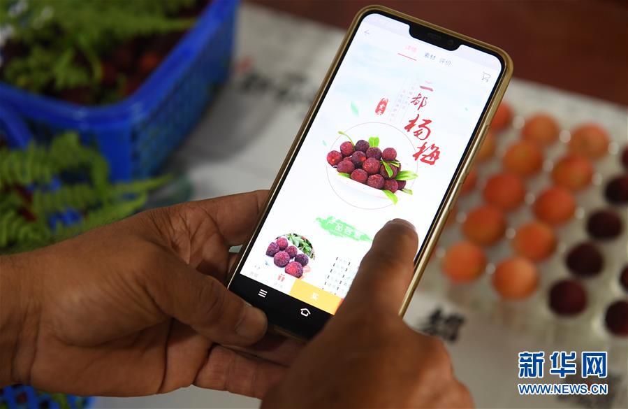 6月3日,在上虞區(qū)驛亭鎮(zhèn),舜利水晶楊梅專業(yè)合作社果農(nóng)在查看自己的電商平臺(tái)楊梅銷售頁面。近日,浙江紹興上虞區(qū)二都楊梅開采。楊梅是上虞區(qū)傳統(tǒng)特色農(nóng)產(chǎn)品,目前上虞區(qū)二都楊梅種植面積1651公頃,年產(chǎn)量1.1萬噸,2019年二都楊梅成功申報(bào)國(guó)家農(nóng)產(chǎn)品地理標(biāo)志認(rèn)證。新華社記者翁忻旸攝。