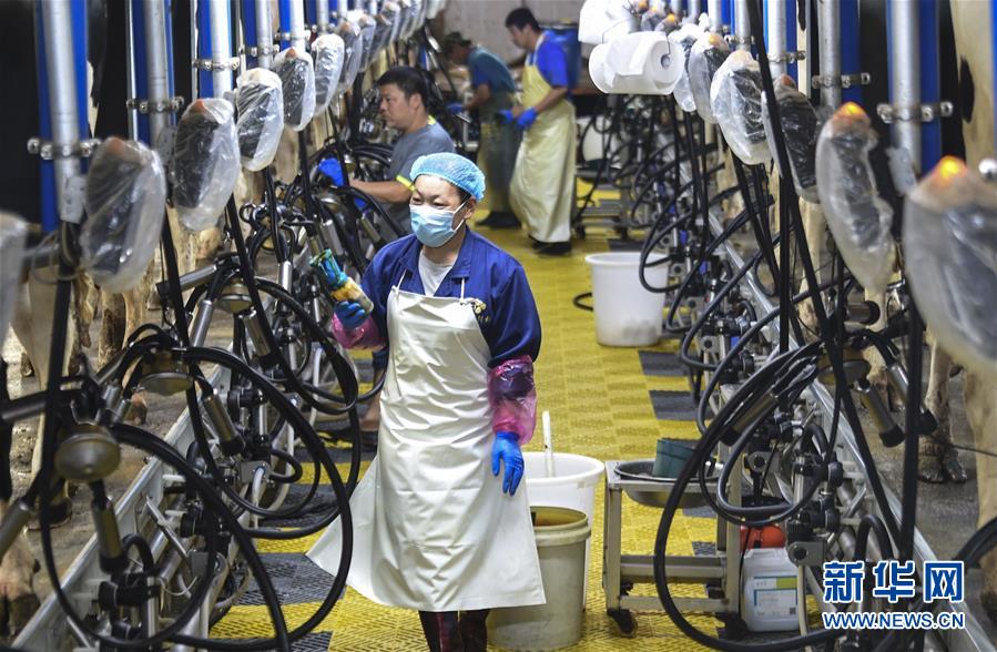 6月3日,村民在深州市榆科鎮(zhèn)郝家莊村奶牛養(yǎng)殖扶貧基地查看擠奶設(shè)備運行情況。今年以來,河北省深州市圍繞決勝全面小康、決戰(zhàn)脫貧攻堅任務(wù)目標,在推進產(chǎn)業(yè)扶貧的過程中注重激發(fā)內(nèi)生動力,通過電商扶貧、扶貧車間、特色種植養(yǎng)殖等多種形式,提升自我“造血”功能,提高貧困群眾受益度。新華社記者李曉果攝。