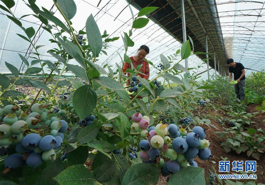 6月4日,唐山市豐潤區(qū)火石營鎮(zhèn)趙莊子村百草坡農(nóng)產(chǎn)品農(nóng)民專業(yè)合作社社員在生態(tài)農(nóng)業(yè)園的大棚內(nèi)采摘藍(lán)莓。新華社記者郭雅茹攝。