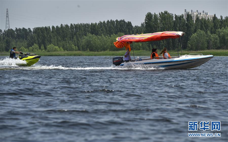 6月5日,游客在文安縣趙王新河濕地公園游覽。近年來,河北省文安縣將植樹造林與城市建設(shè)有機融合,探索“政府引導(dǎo)、企業(yè)運作、多方共贏”的市場化植樹造林新模式,大規(guī)模推進國土綠化,打造人與自然和諧共生的優(yōu)美生態(tài)環(huán)境,構(gòu)筑京津雄綠色屏障。截至目前,該縣森林覆蓋率已經(jīng)達到33%,城區(qū)綠地面積達到36.48%。新華社記者李曉果攝。