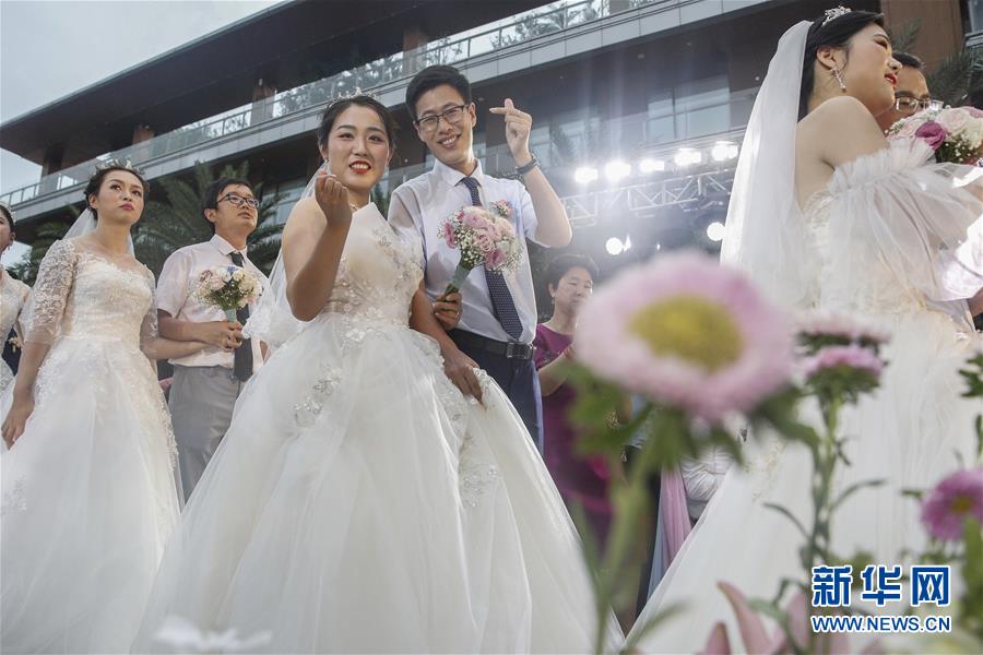 6月6日,新人在海南博鰲樂城國(guó)際醫(yī)療旅游先行區(qū)參加集體婚禮。 新華社記者 張玉薇 攝
