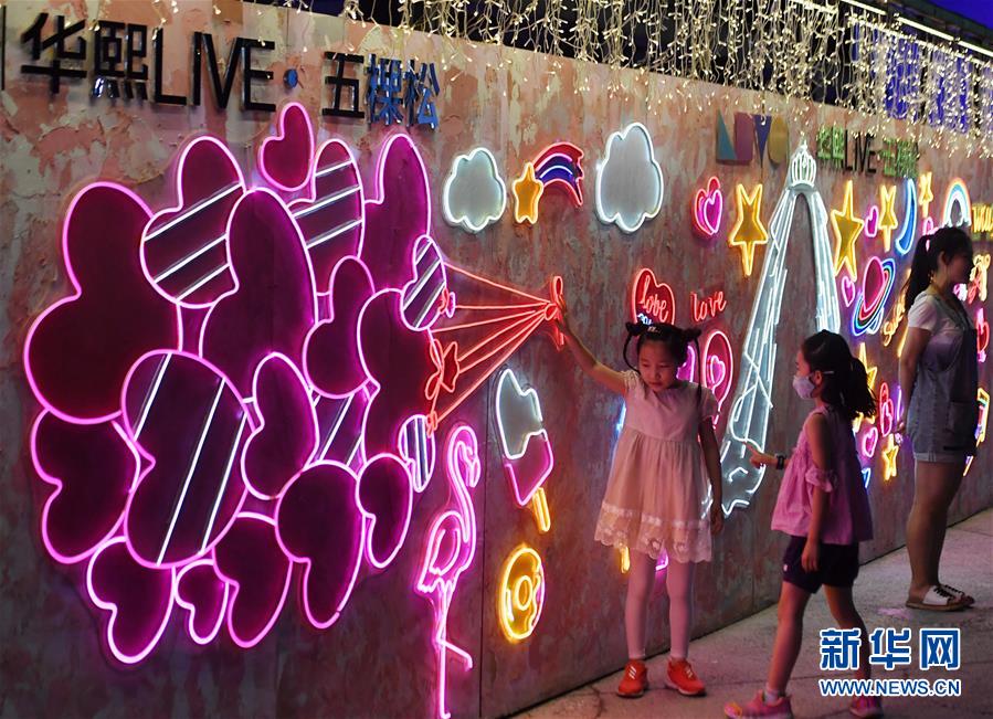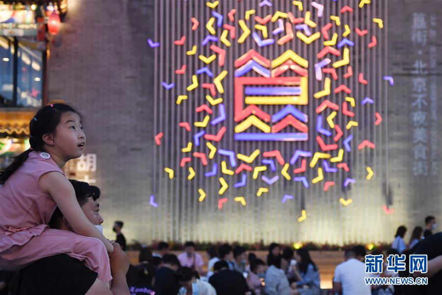 6月6日,小朋友在北京五棵松華熙Live游玩。6月6日晚,北京79個地標(biāo)、商圈、特色街區(qū)同時點亮夜京城,營造消費氛圍,北京“夜經(jīng)濟(jì)”也加速回暖。新華社記者張晨霖攝