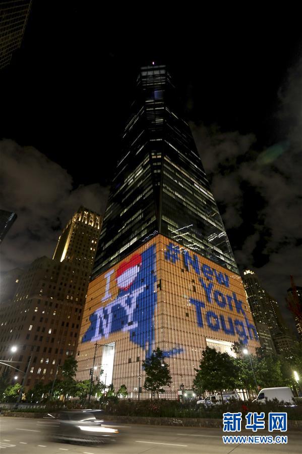 6月7日,美國紐約世貿(mào)中心一號樓外墻呈現(xiàn)出“我愛紐約”和“紐約堅(jiān)強(qiáng)”字樣。新華社記者王迎攝