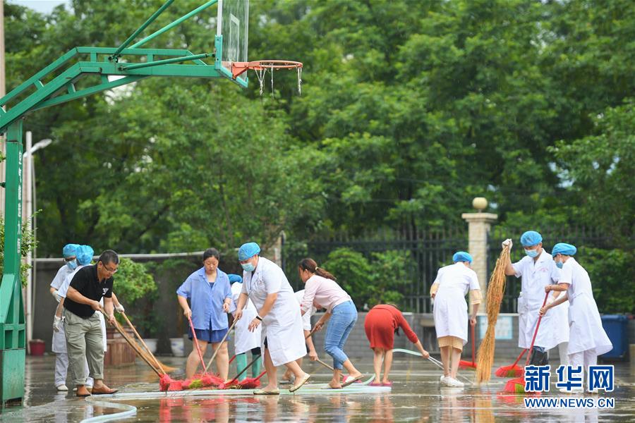 6月8日,在永州市江華瑤族自治縣白芒營鎮(zhèn)車下完全小學(xué),工作人員在校園里清淤、沖洗地面。受近日持續(xù)強(qiáng)降雨影響,湖南省永州市江華瑤族自治縣發(fā)生洪澇災(zāi)害。6月8日,永州市江華瑤族自治縣白芒營鎮(zhèn)車下完全小學(xué)開展清淤、消毒工作,為6月9日恢復(fù)上課做準(zhǔn)備。新華社記者陳澤國攝