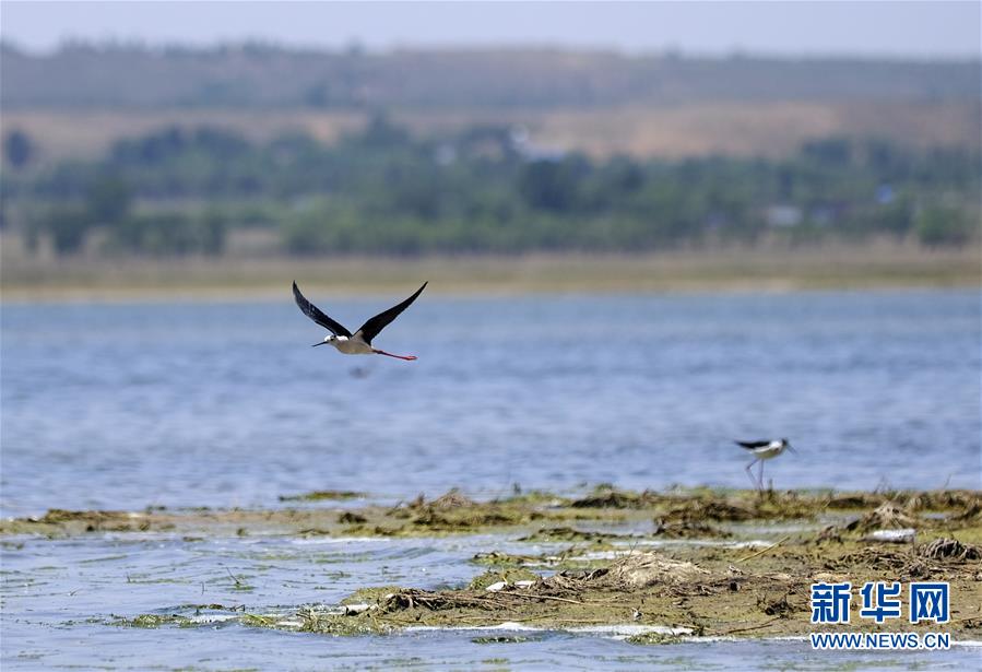 這是6月9日在泊江海子拍攝的黑翅長(zhǎng)腳鷸。近年來(lái),在當(dāng)?shù)卣亩喾N措施治理下,曾經(jīng)水面萎縮的內(nèi)蒙古自治區(qū)鄂爾多斯市境內(nèi)的泊江海子水量逐漸恢復(fù)。近期,包括遺鷗在內(nèi)的40多種鳥類來(lái)此棲息,泊江海子重新成為鳥類的樂(lè)園。新華社記者賈立君攝