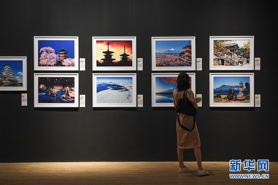 6月13日,觀眾在位于??诘暮D鲜〔┪镳^觀看“地球諧音——世界文化遺產(chǎn)攝影藝術(shù)展”。新華社記者蒲曉旭攝。