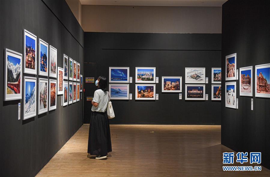 6月13日,觀眾在位于海口的海南省博物館觀看“地球諧音——世界文化遺產(chǎn)攝影藝術(shù)展”。新華社記者蒲曉旭攝。