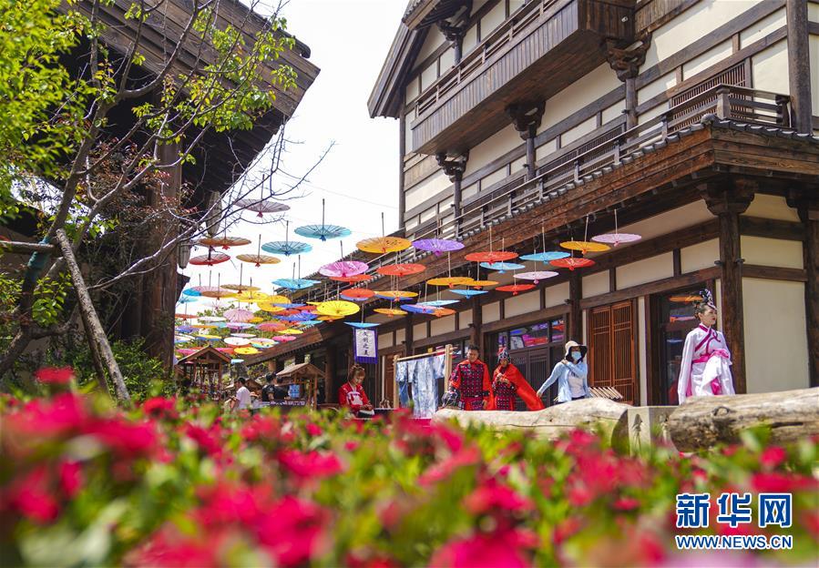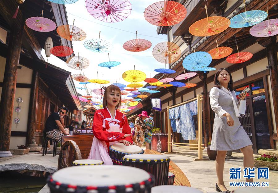 6月13日,在長春市世茂蓮花山小鎮(zhèn)寬厚里商街,表演者身穿漢服、古裝進行表演展示。當(dāng)日是“文化和自然遺產(chǎn)日”。吉林長春首屆蓮花山消夏生活節(jié)在世茂蓮花山小鎮(zhèn)舉行?;顒訉⒎沁z展示與假日消暑休閑相結(jié)合,讓游人在“古色古香”的油紙傘巷中品傳統(tǒng)文化魅力,享夏日休閑愜意。新華社記者 許暢 攝