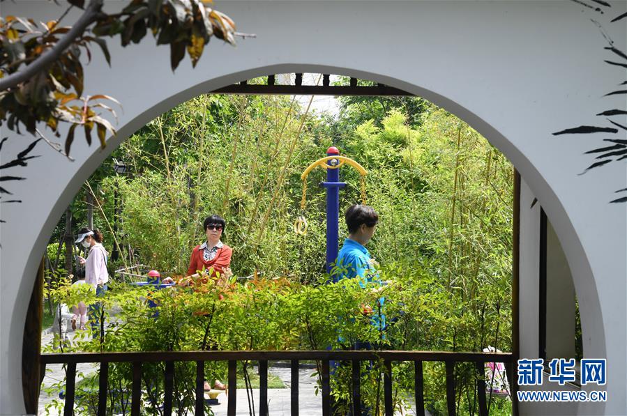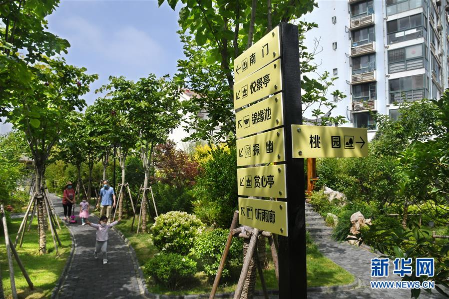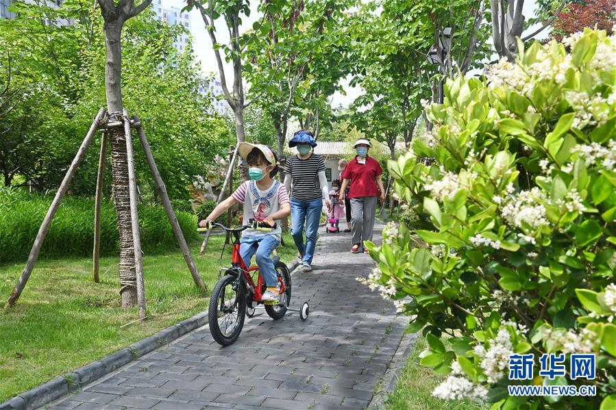 6月11日,市民在新建成的市北區(qū)“昌樂園”游玩。近年來,青島市市北區(qū)充分利用道路節(jié)點、棚改騰空土地、零星地塊,見縫插“綠”,陸續(xù)打造了100余處口袋公園,為市民創(chuàng)造良好的人居環(huán)境。新華社記者 李紫恒 攝