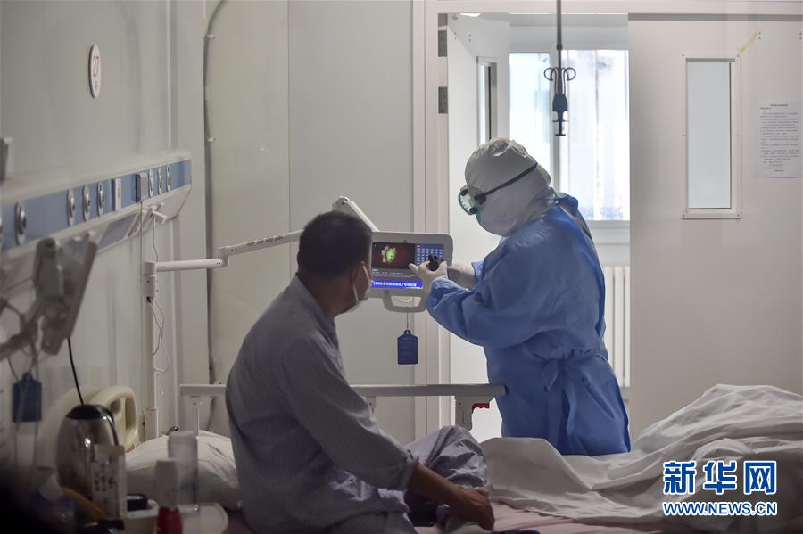 6月16日,在北京地壇醫(yī)院隔離病房內(nèi),護士檢查患者輸液情況。當日下午,記者探訪北京市收治新冠肺炎患者的地壇醫(yī)院隔離病房。6月11日以來,北京連續(xù)發(fā)現(xiàn)新冠肺炎確診病例。截至6月16日零時,新增確診病例已達106例。目前,北京市報告的確診患者均在地壇醫(yī)院治療。新華社記者 彭子洋 攝