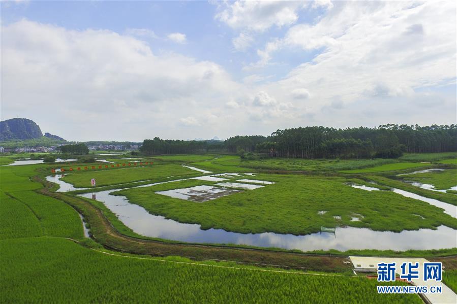 這是廣西武宣縣祿新鎮(zhèn)上堂村稻蝦輪作養(yǎng)殖示范基地(6月17日攝,無(wú)人機(jī)照片)。新華社記者 曹祎銘 攝