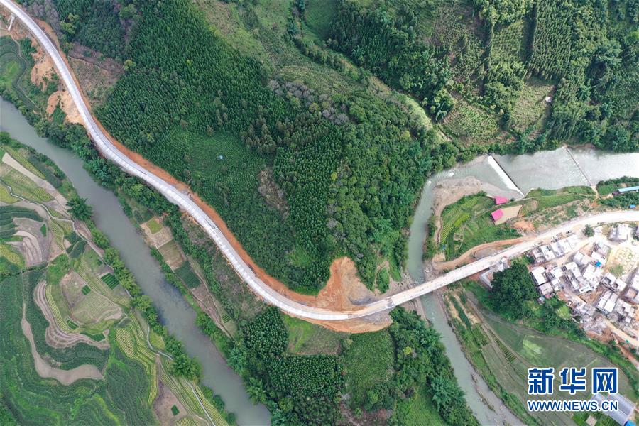 正在建設(shè)的百坭村二級公路(6月17日攝,無人機(jī)照片)。