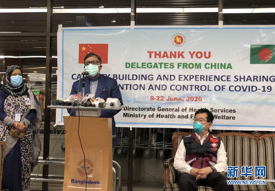 6月22日,孟加拉國衛(wèi)生和家庭福利部部長馬利克(中)在首都達卡舉行的送行儀式上致辭感謝中方專家組。中國赴孟加拉國抗疫醫(yī)療專家組圓滿完成任務(wù),于22日乘機返回祖國。孟加拉國衛(wèi)生和家庭福利部部長馬利克對疫情發(fā)生以來中國給予孟加拉國的大力支持表示感謝。新華社記者劉春濤攝