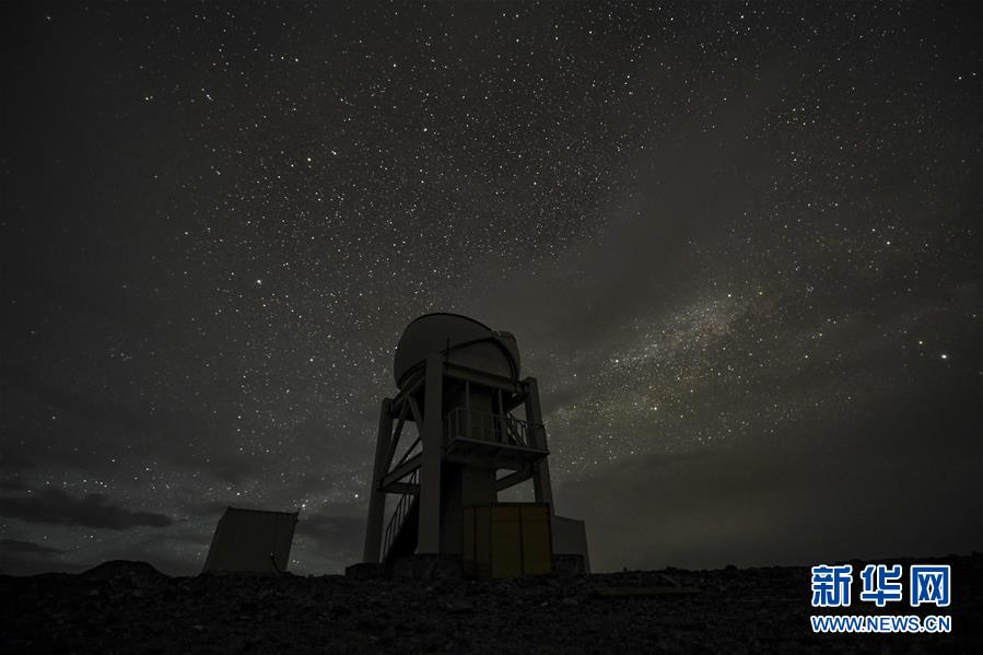 星空下的中國科學(xué)院新疆天文臺(tái)慕士塔格觀測站一角(6月16日攝,長時(shí)間曝光)。新華社記者胡虎虎攝