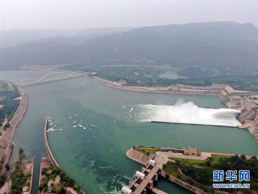這是6月23日拍攝的黃河小浪底水利樞紐工程(無(wú)人機(jī)照片)。近日,黃河小浪底水利樞紐工程開(kāi)啟洪水調(diào)度運(yùn)用模式,從空中俯瞰,蔚為壯觀。新華社記者郝源攝